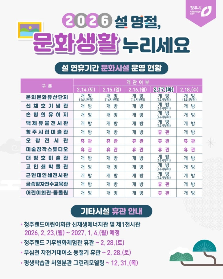 👉 [설 연휴 청주 나들이 명소 추천] https://blog.naver.com/cjcityblog/224181495473