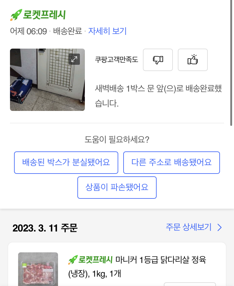 쿠팡의 속도를 알기에 국산 마니커 허벅지살 1키로 주문